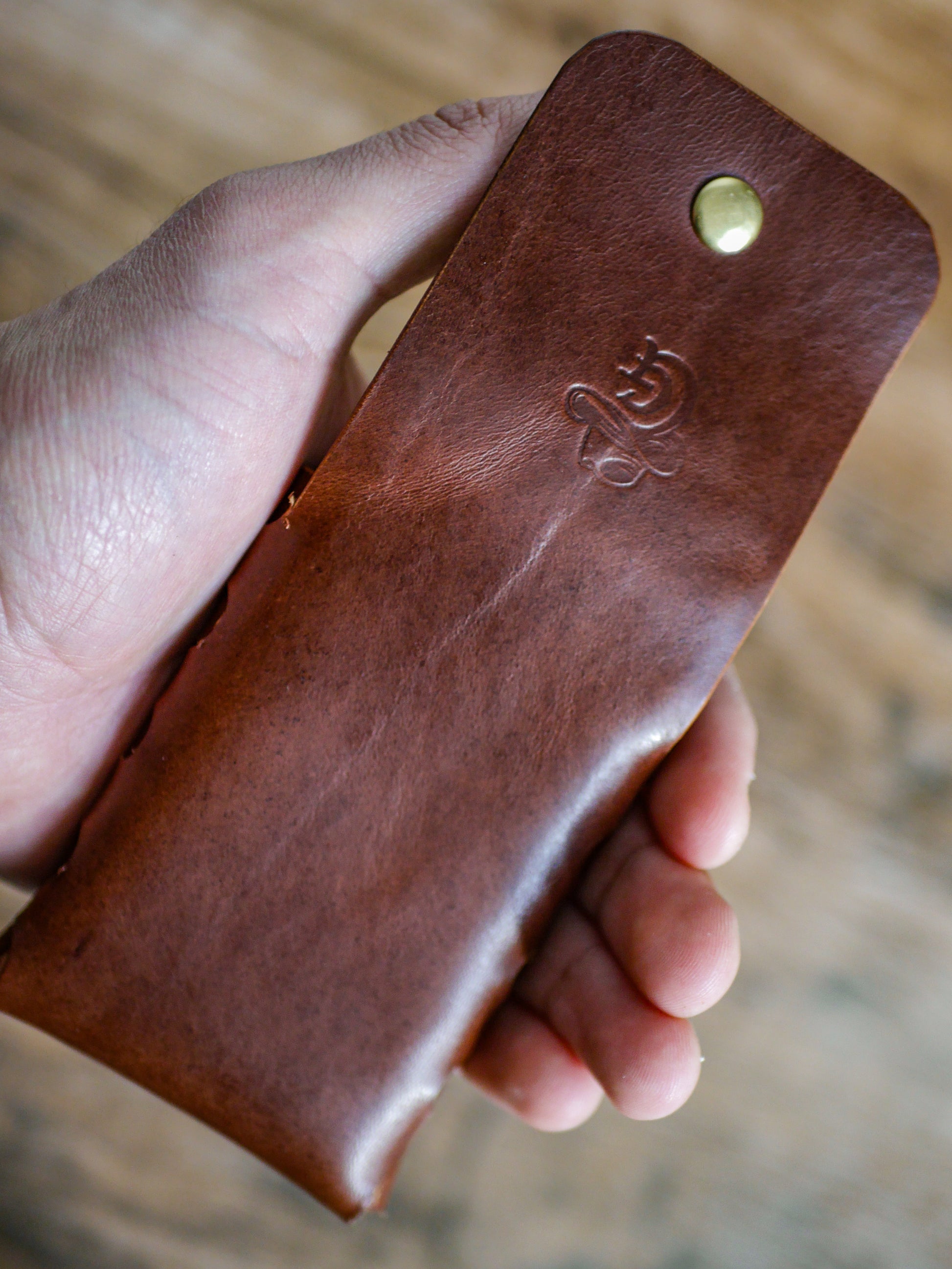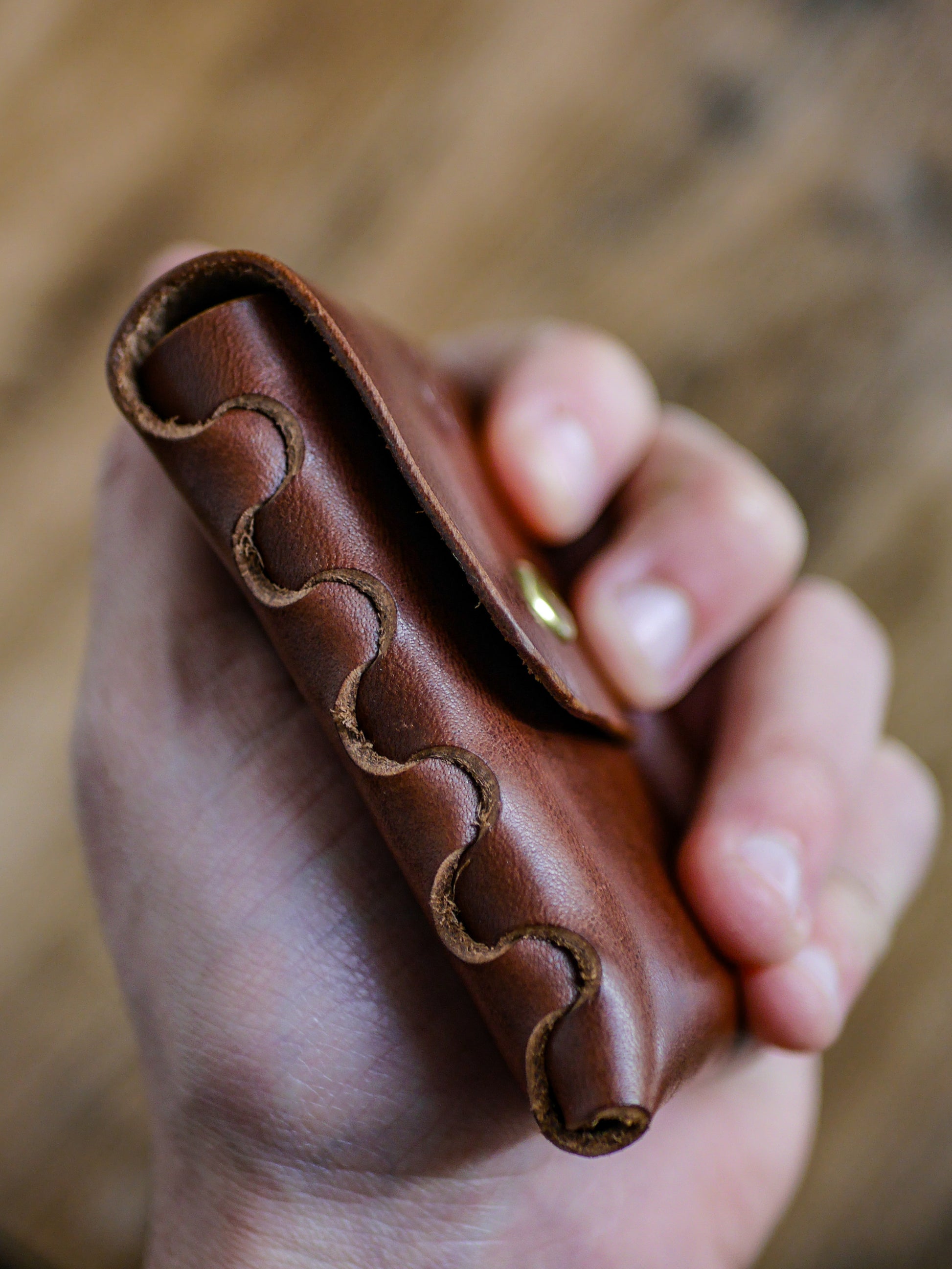 Ce porte-cartes est entièrement fabriqué à la main, sans machine industrielle, sans chaîne de production, sans raccourci. Chaque pièce est coupée, pliée et finie manuellement, avec une attention particulière portée aux lignes, aux tensions du cuir et à la durabilité. Le choix d’une construction sans couture n’est pas qu'un effet de style mais aussi une décision fonctionnelle: moins de points faibles, plus de longévité, une esthétique épurée. Rien de superflu. Juste ce qui doit être là.
